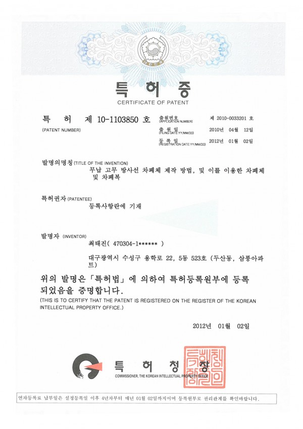 无铅橡胶放射线专利证书 페이지 정보 작성자 DAISEUNG 댓글 0건 조회 218회 작성일 22-04-12 15:37 목록 본문 无铅橡胶放射线专利证书 이전글高频热处理 22.04.12 다음글放射性废弃物储存装置专利证书 22.04.12 댓글 0 댓글목록 등록된 댓글이 없습니다.