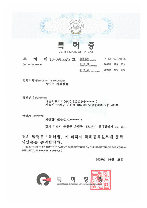 방사선 차폐섬류 특허증 페이지 정보 작성자 DAISEUNG 댓글 0건 조회 236회 작성일 22-04-12 15:37 목록 본문 방사선 차폐섬류 특허증 이전글방사선 폐기물 저장장치 특허증 22.04.12 다음글설진기 특허증 22.04.12 댓글 0 댓글목록 등록된 댓글이 없습니다.